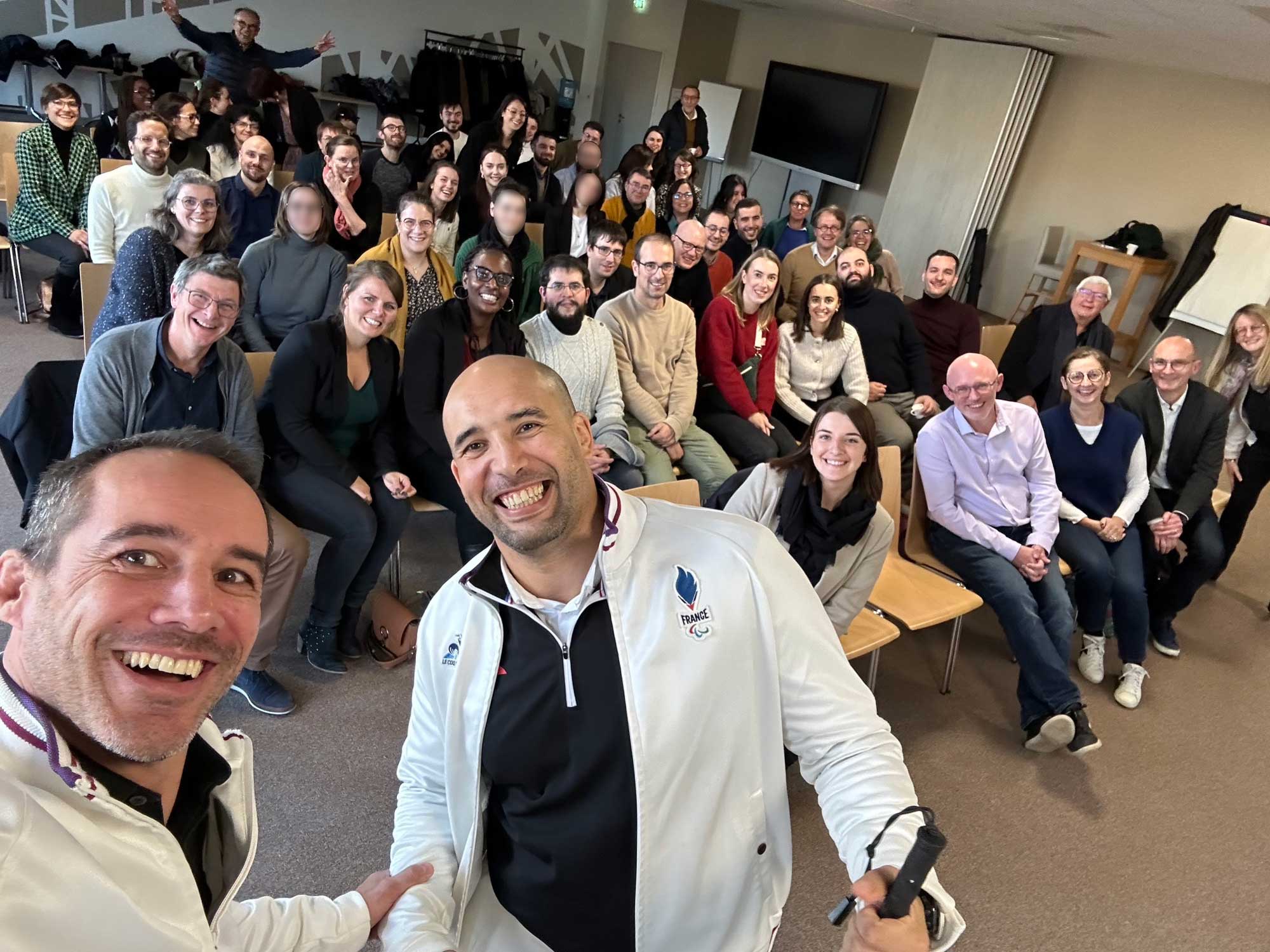 L’après-midi, nous avons eu l’honneur d’accueillir Nacer ZORGANI, athlète de haut niveau en para-judo et malvoyant, de retour des Jeux paralympiques de Paris 2024, ainsi qu’Antoine HAYS, directeur du secteur Para-judo France. Ensemble, ils nous ont fait part des valeurs qu’ils défendent et de leurs expériences autour du thème « La culture de la résilience et de la performance ». Un grand merci à eux pour leurs interventions et également à Jean-Yves LE BAUT, président du Club de Judo de Cholet, association qui apporte son soutien aux judokas en situation de handicap.